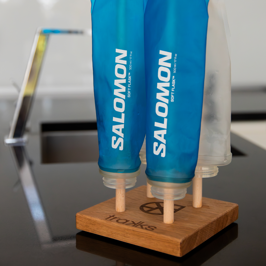 Naturel, durable, esthétique et pratique : le Sèche-Flasques TraKKs est l'objet indispensable pour tous les amateurs de trail et de running.